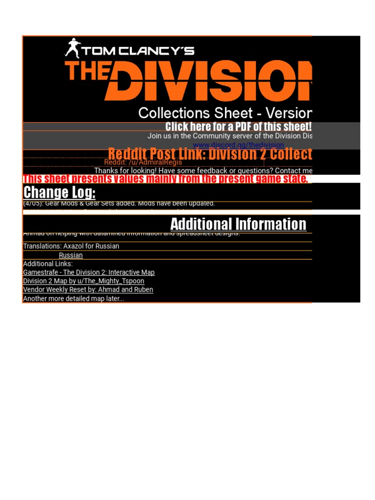 Division 2 Collections Sheet Pdf Firearms Projectiles